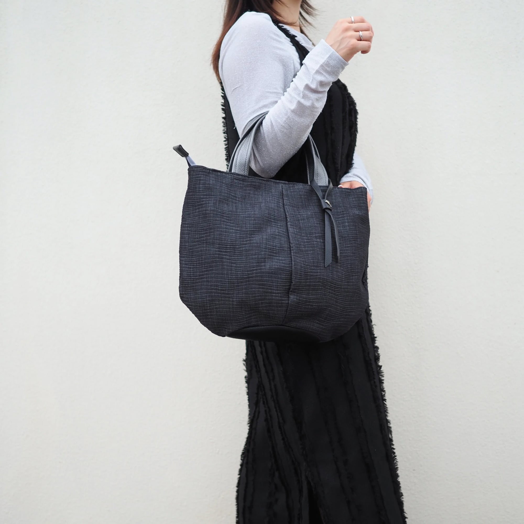 プリーツ加工を施した軽量のデニム素材の2wayハンドバッグ。