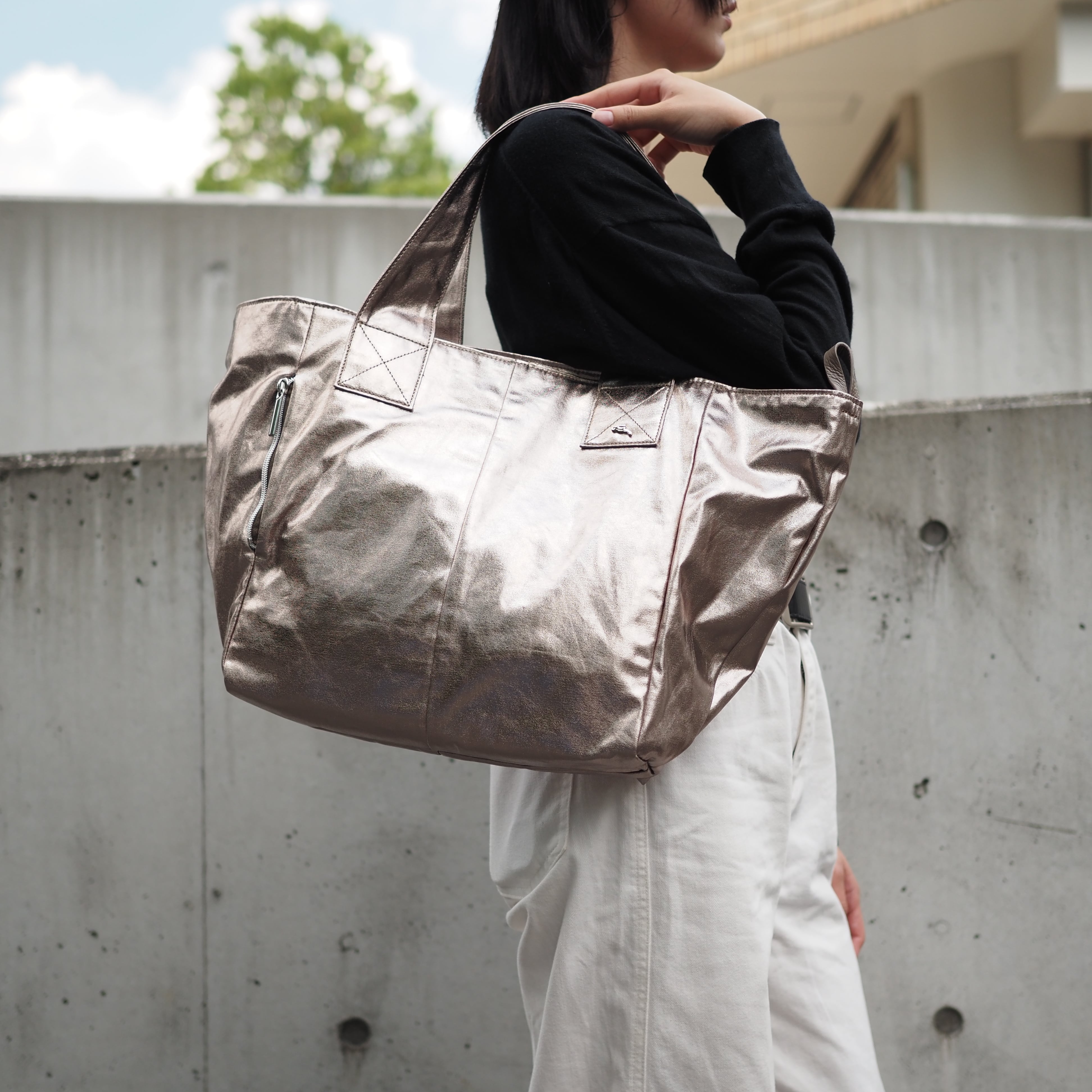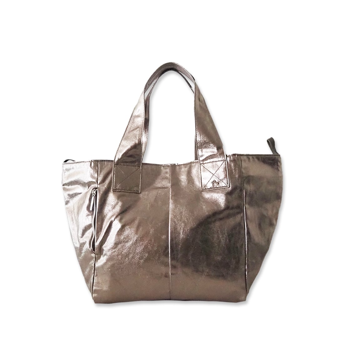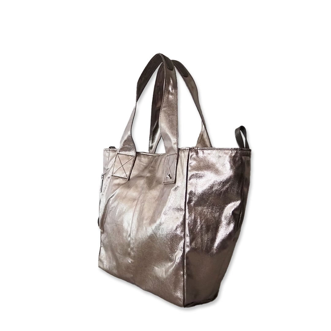 軽量のコットンコーティング素材(ブロンズカラー)で、デイリーに活躍するトートバッグです。
