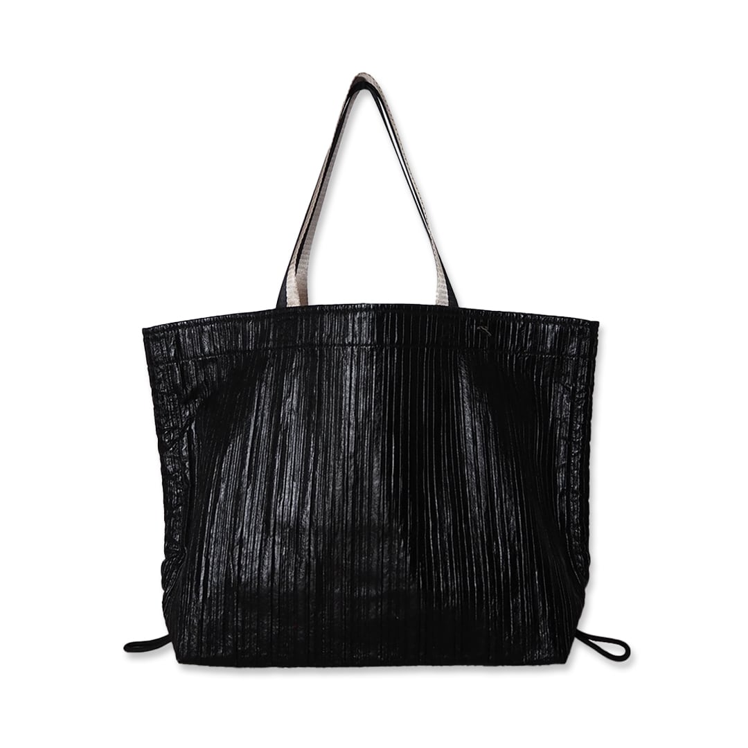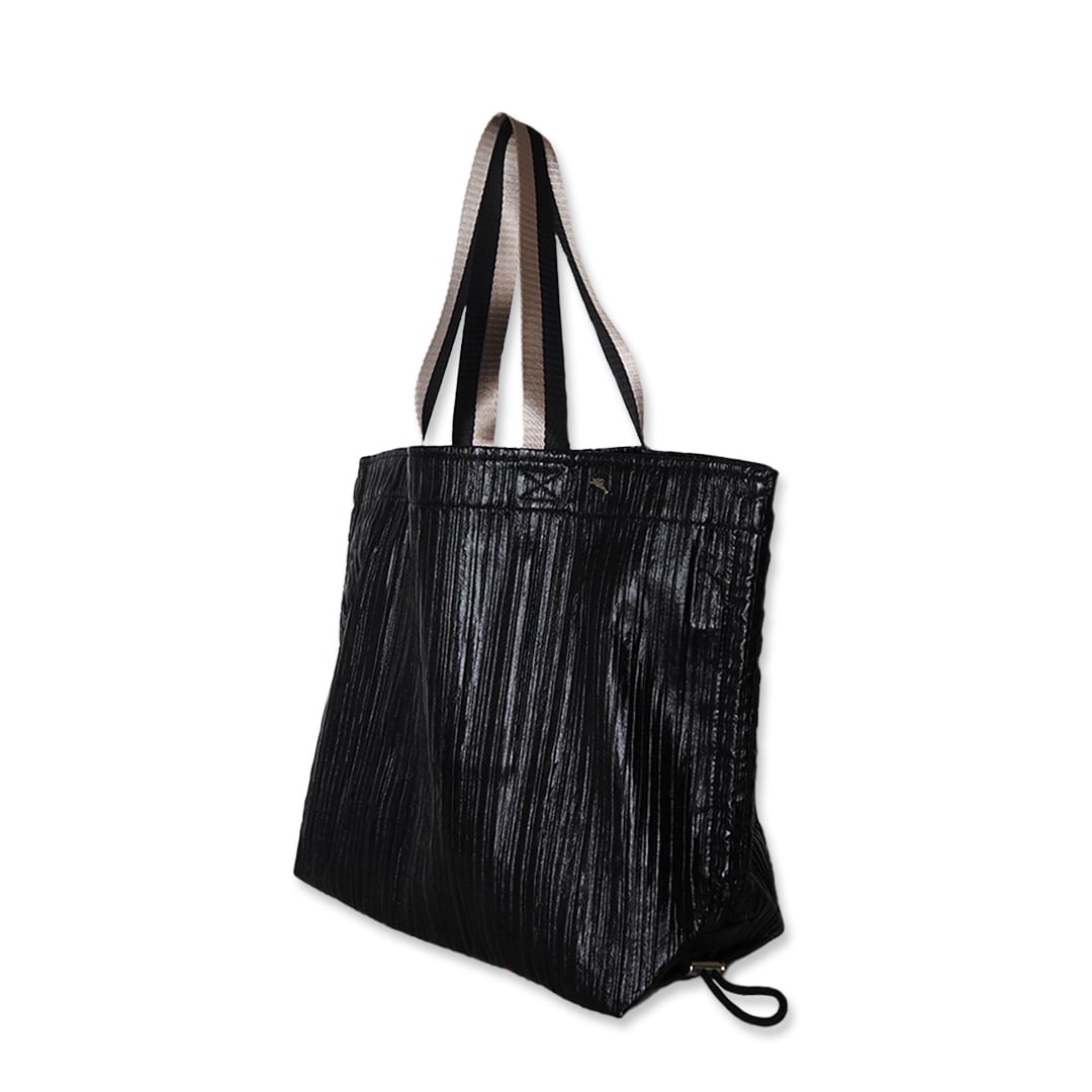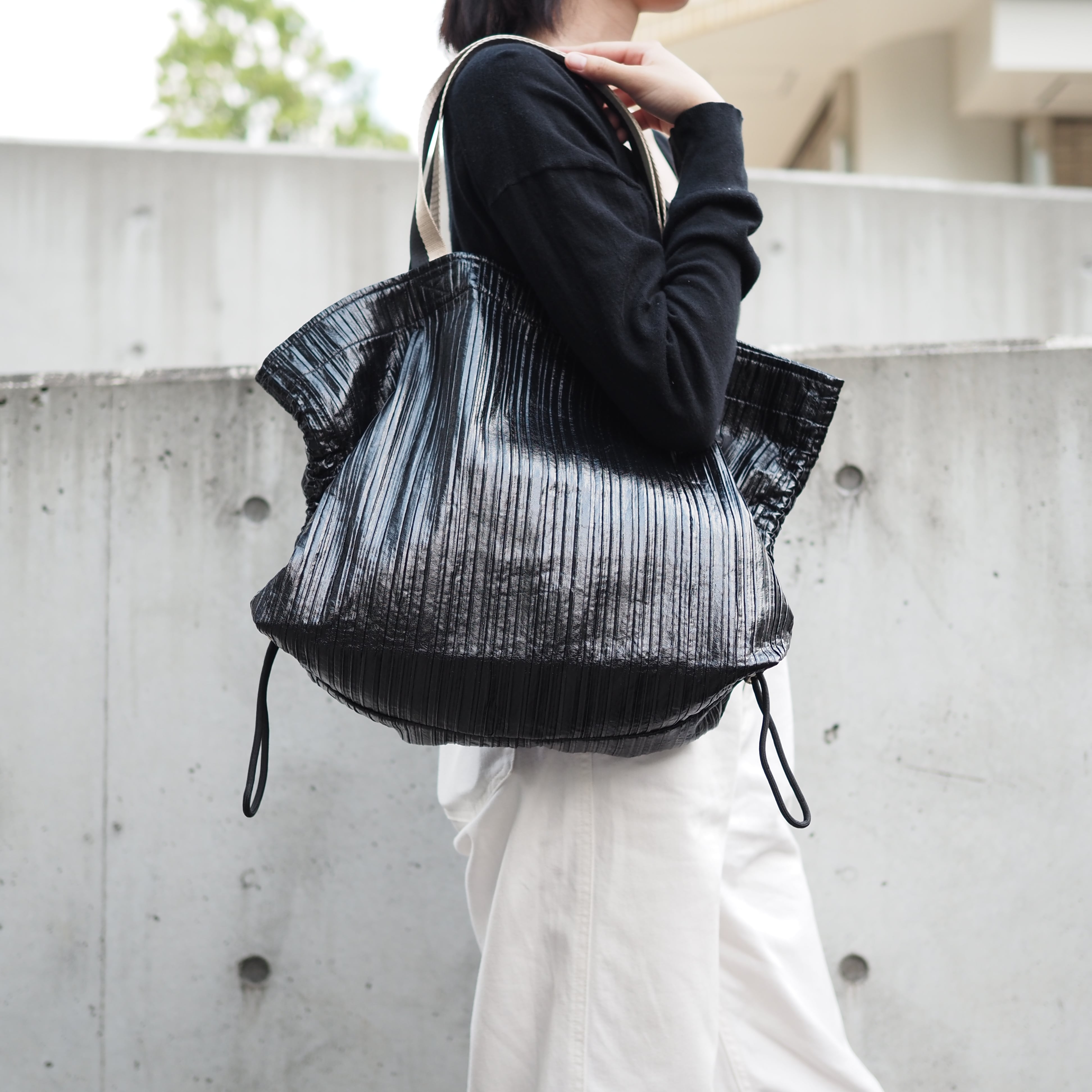 プリーツ加工を施した肉厚なポリエステル素材(黒)の、超軽量×大きめサイズのサブバッグです。