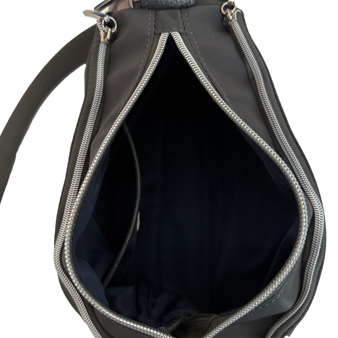 4つのアウトポケットはすべてファスナー付きの安心設計なので、ショルダーベルトを短く調整してボディバッグ風にお使いいただいても素敵です。
