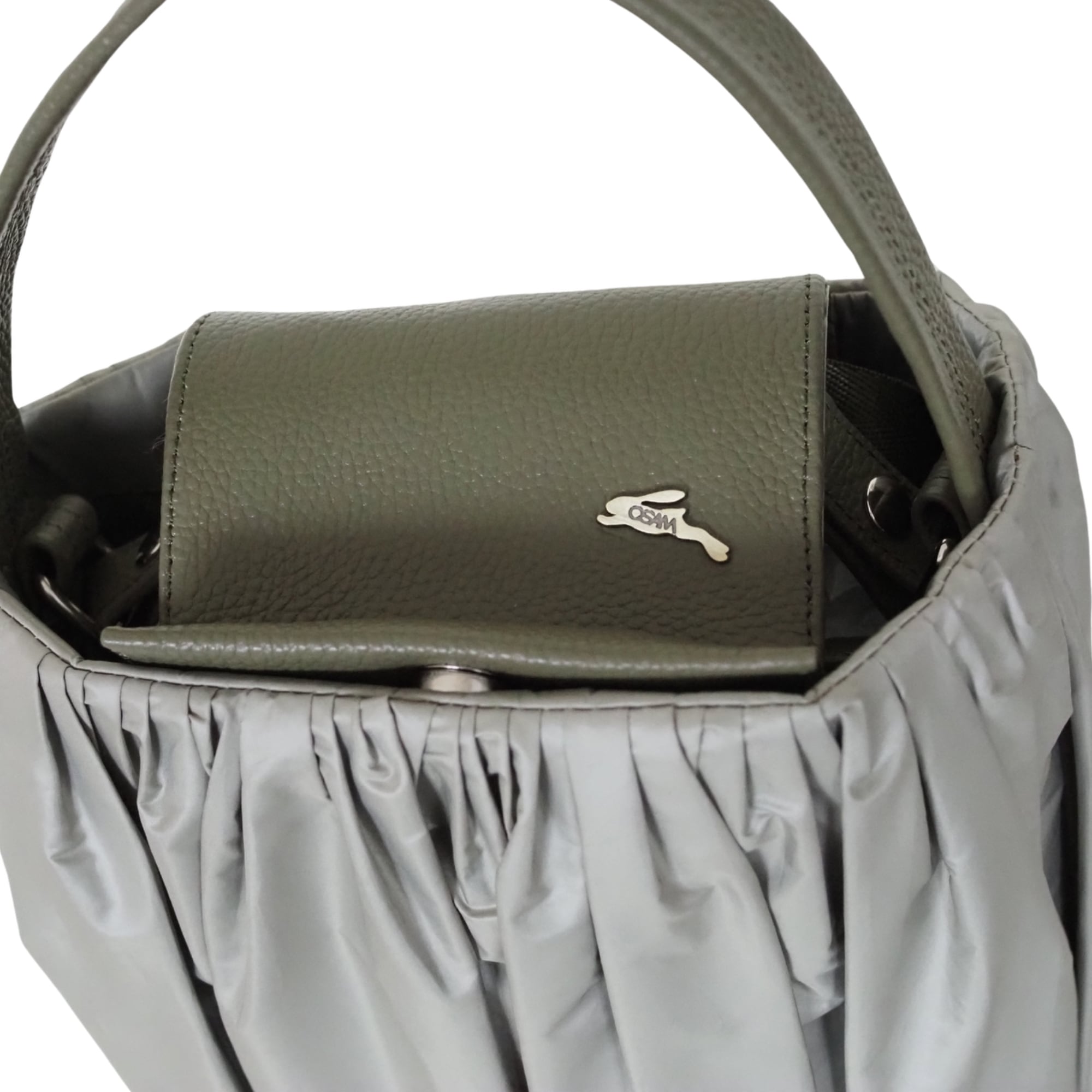 サラリとしたナイロン素材にタックを寄せた加工を施したプリマのような可愛い2wayハンド