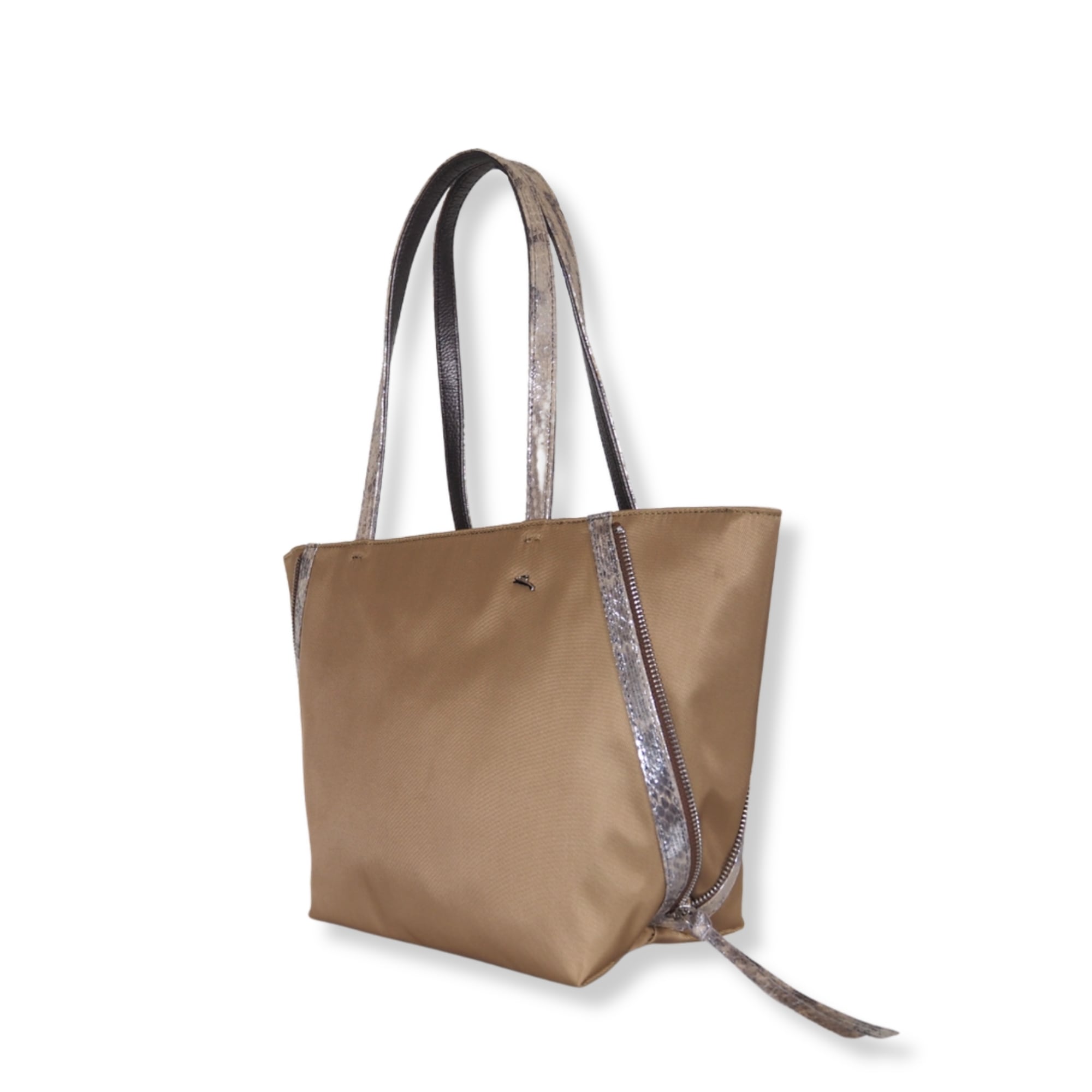サイドファスナーを閉めると形が変わるので、カジュアルもエレガントも両方楽しむことができます。
