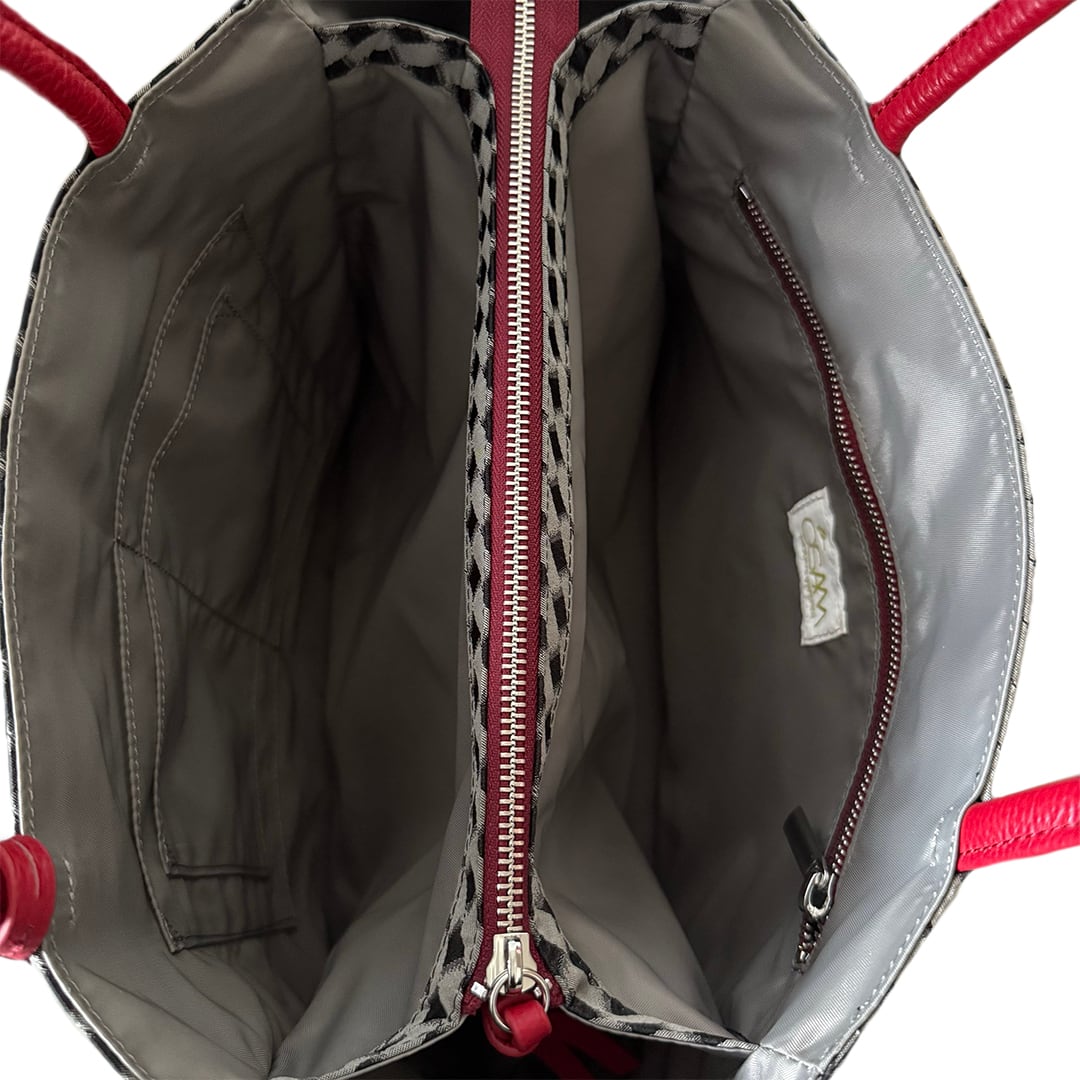 内装はファスナーとあおりポケットでお仕立て。