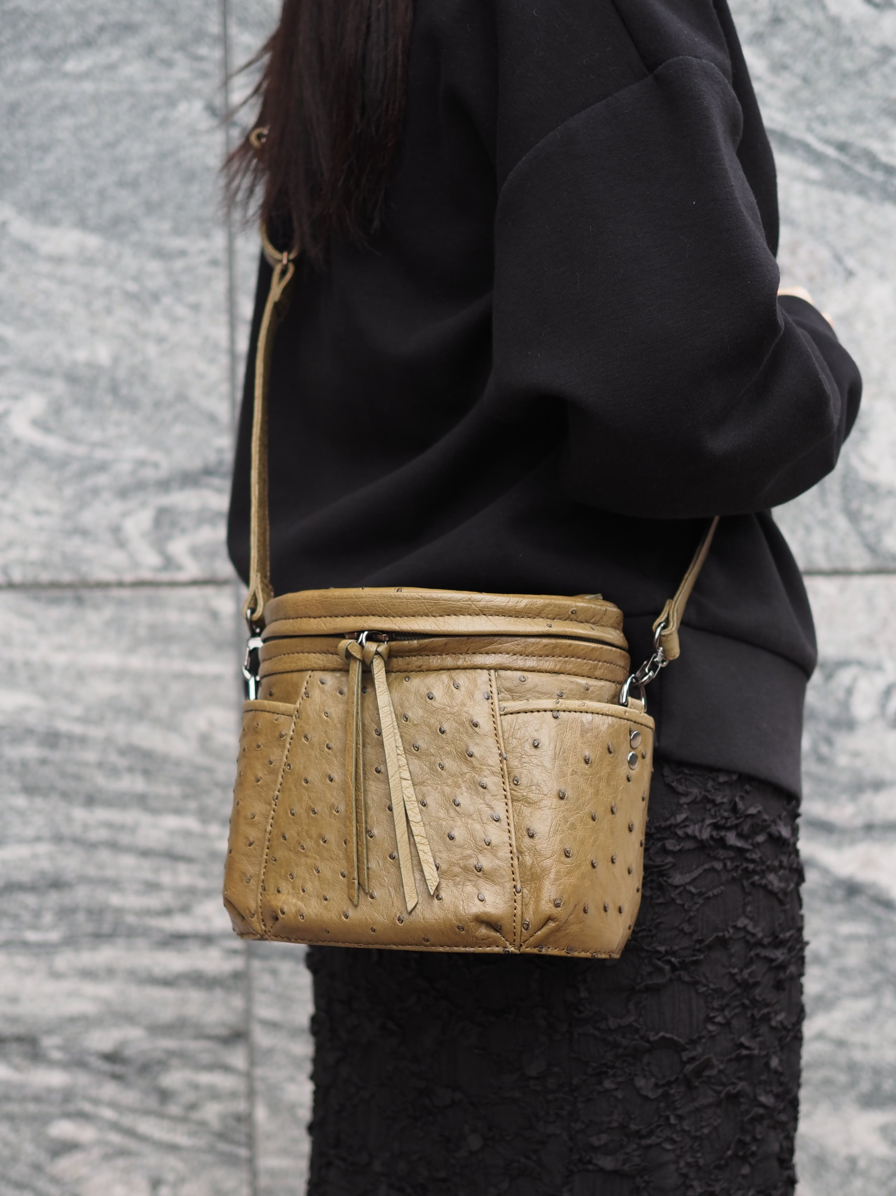 オーストリッチ(カーキ)のバニティバッグ