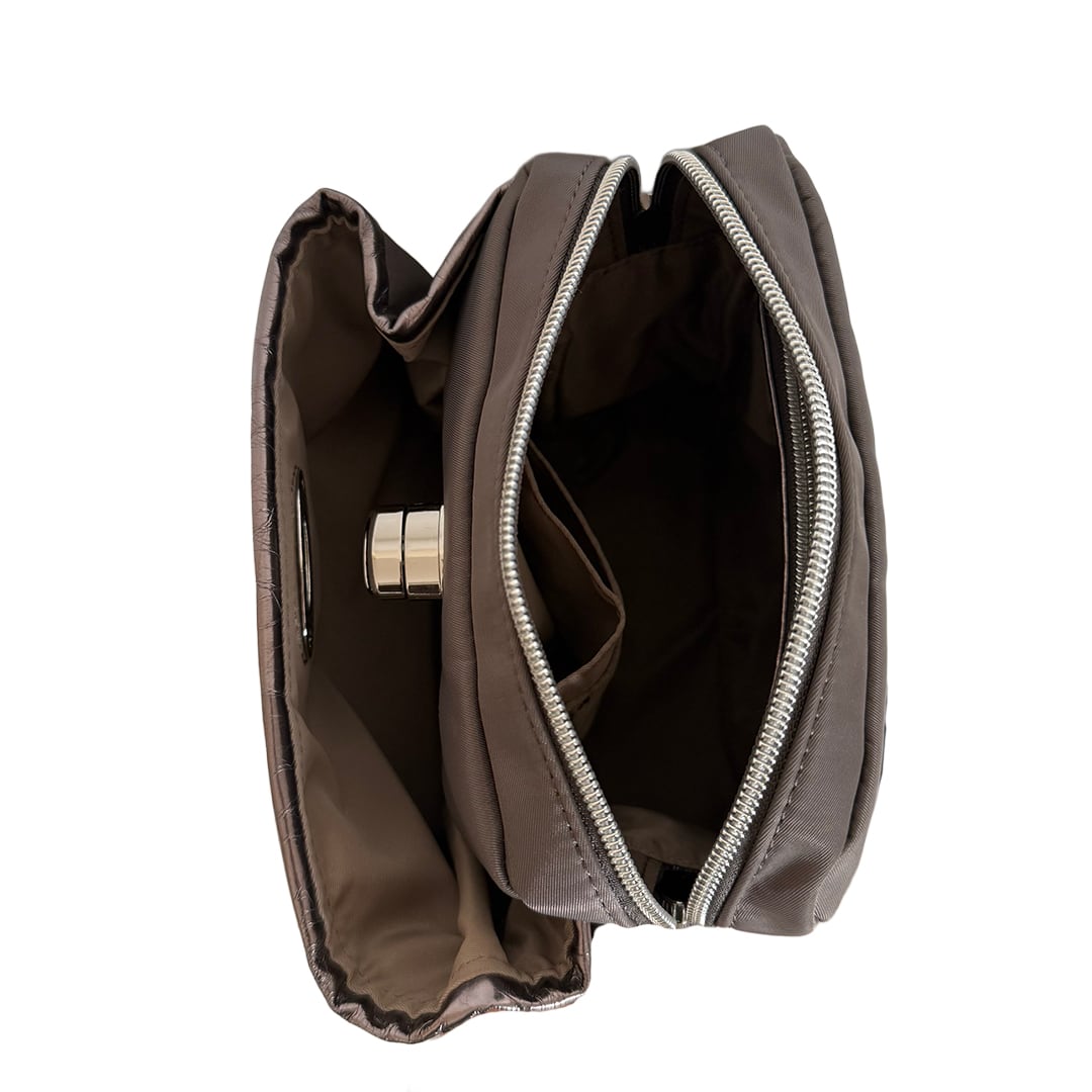 シーズンレスに活躍する、軽量のナイロン素材(モカ)のショルダーバッグ。
