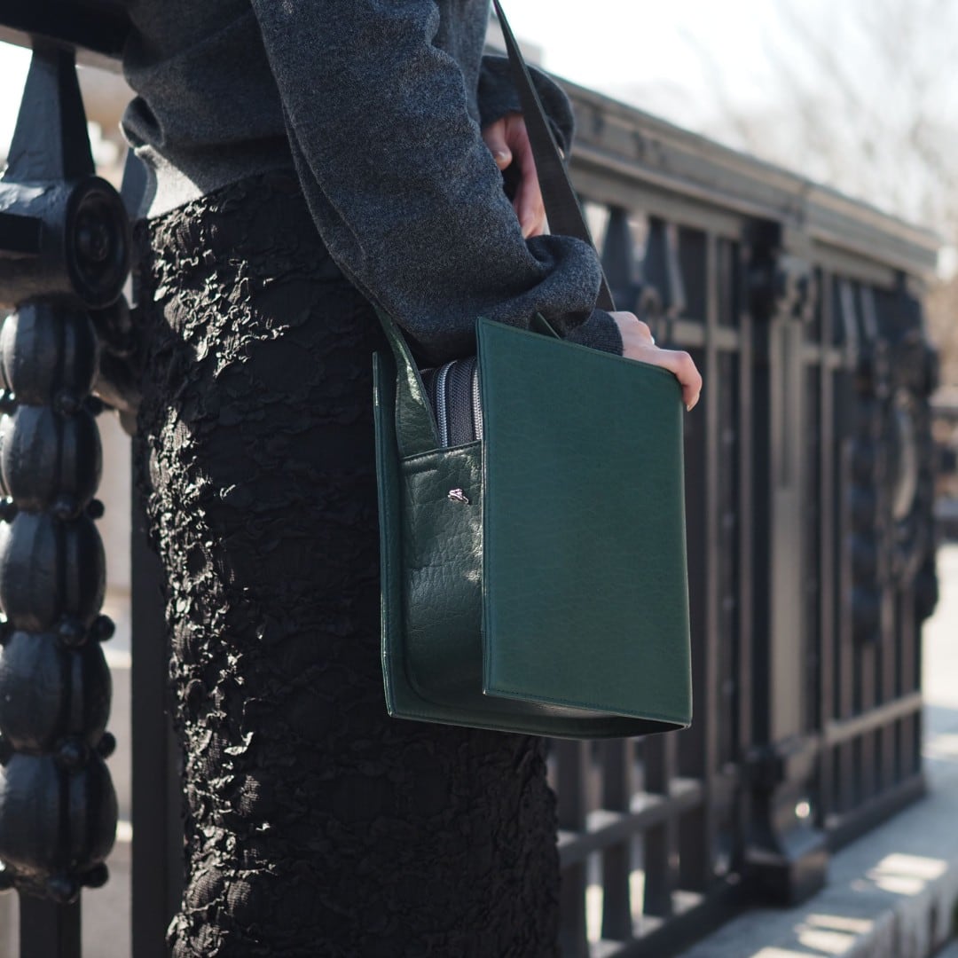 本を開くような感覚で大きく開くダブルファスナー仕様は、中身の視認性が高く、出し入れもスムーズです。マチをしっかり確保した構造により、荷物を入れても型崩れせず、美しい「本の形」をキープ。お気に入りのアイテムを、まるで栞を挟むように整然と収納できる機能性は、忙しい毎日をサポートする最高のパートナーとなります。