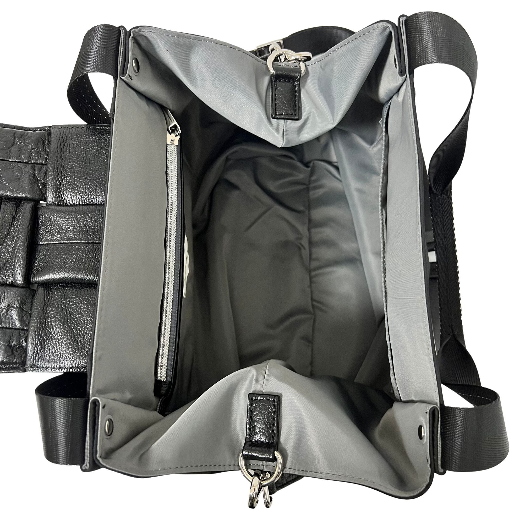 フラップが特徴の2wayトート重厚なフラップと軽やかな光ナイロンの融合