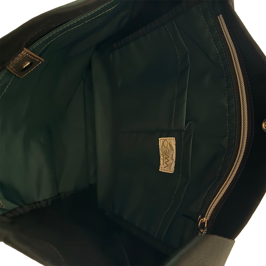 内装には、貴重品を収納できるファスナーポケットと便利な2つのオープンポケットが付いた〈ポーチ〉のようなフラップがあり、持ち物に被せることでプライバシーも守ってくれます。