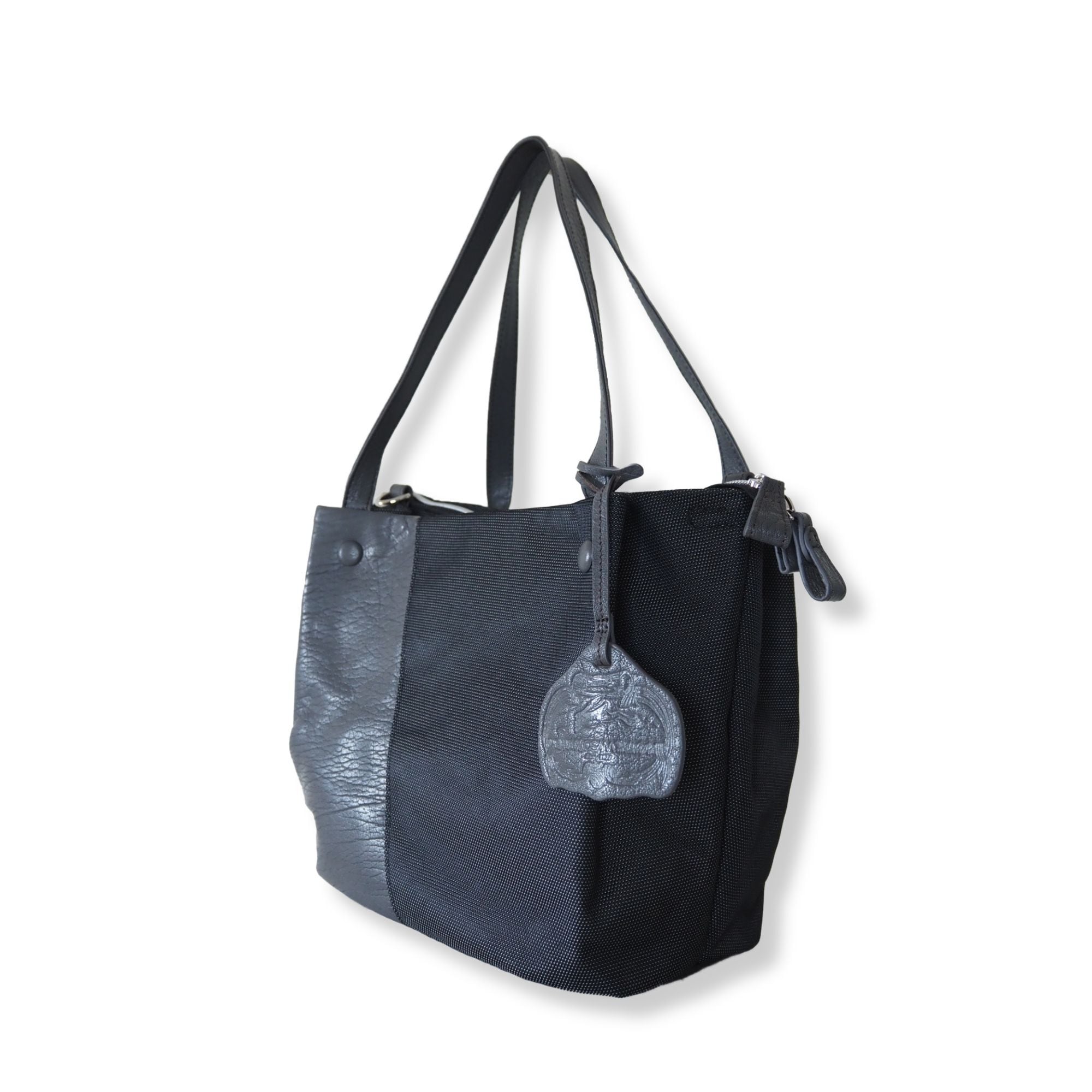 バッファロー(水牛革)ブルーグレーとさしこ風ポリエステルの美しいコントラスト