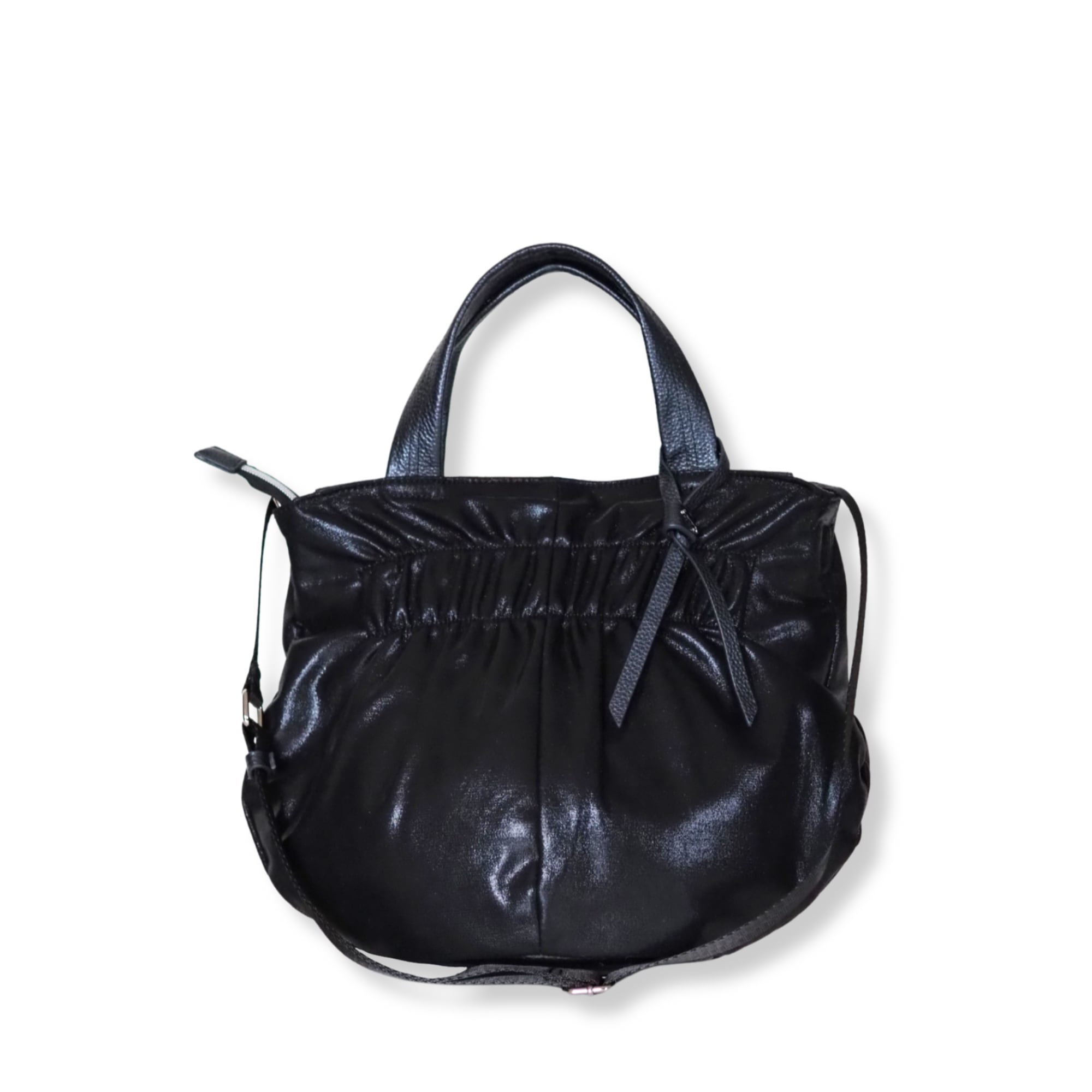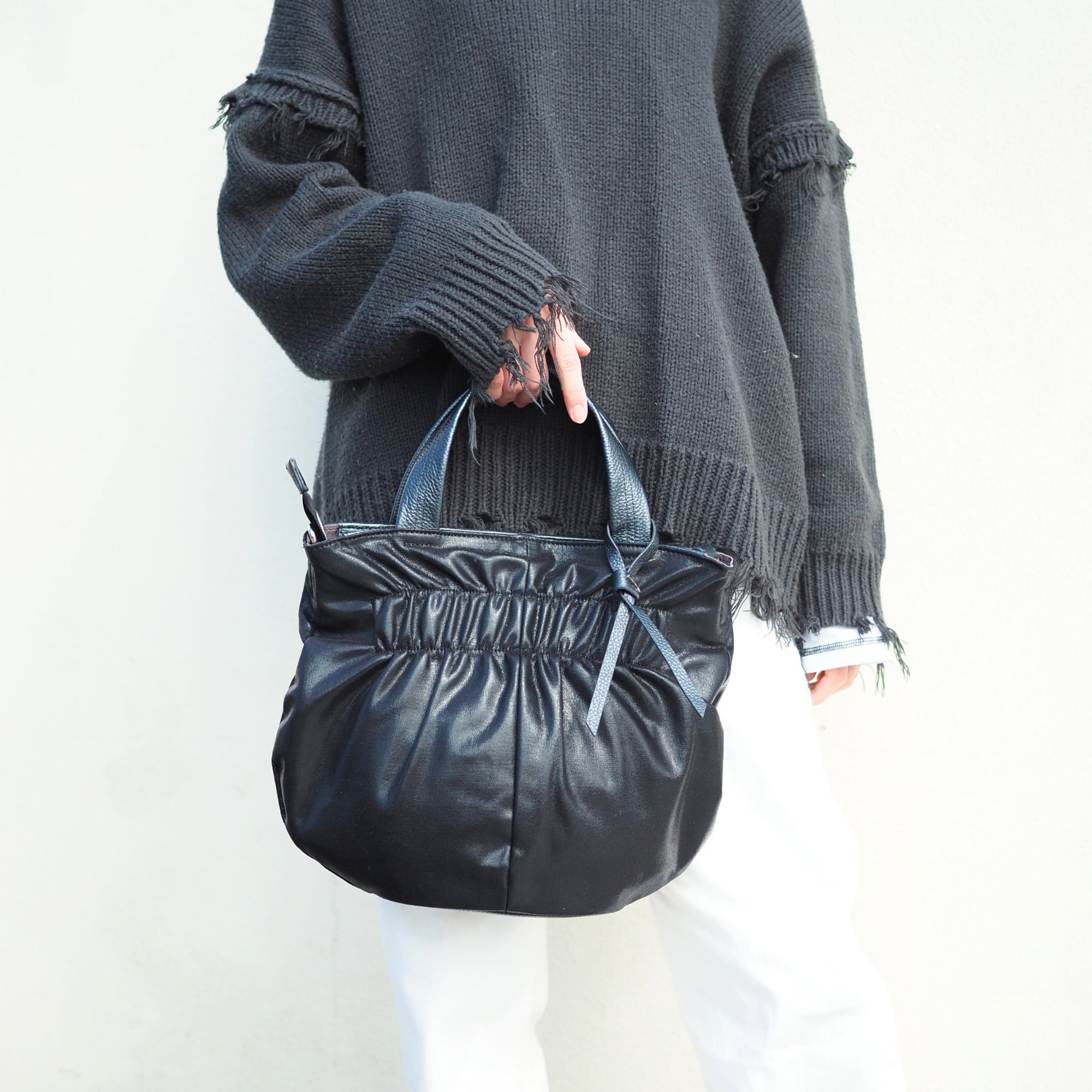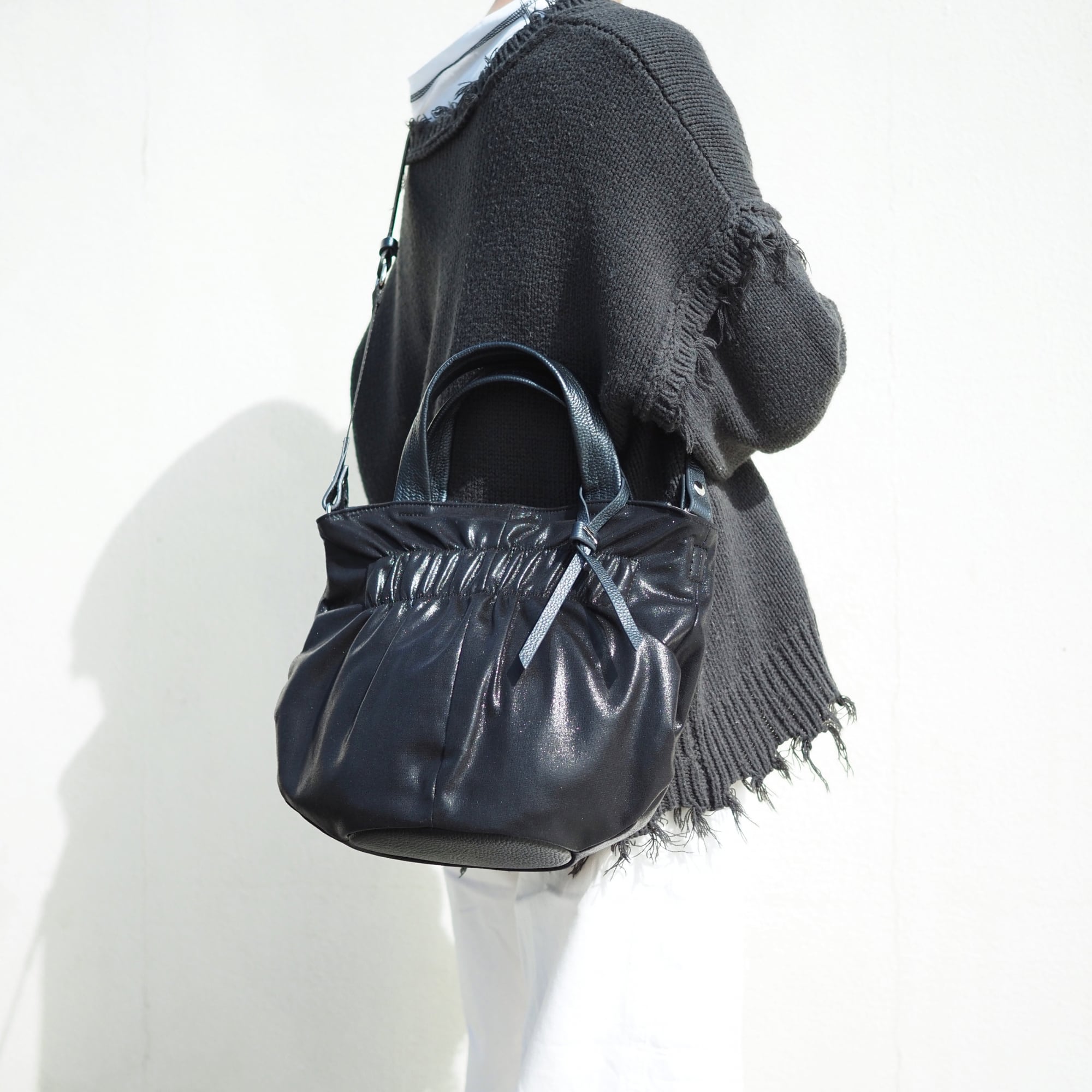 シャーリングがアクセントの2wayハンドバッグ。