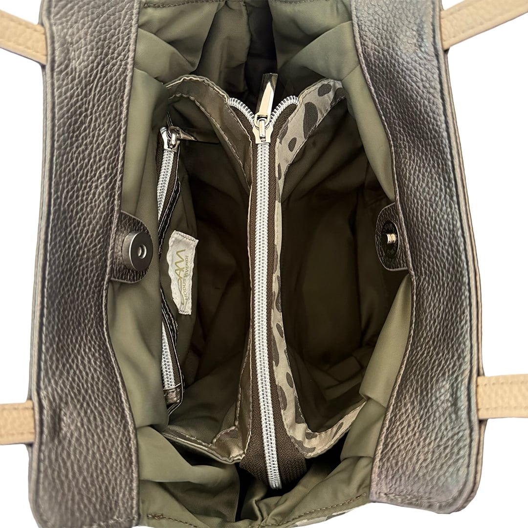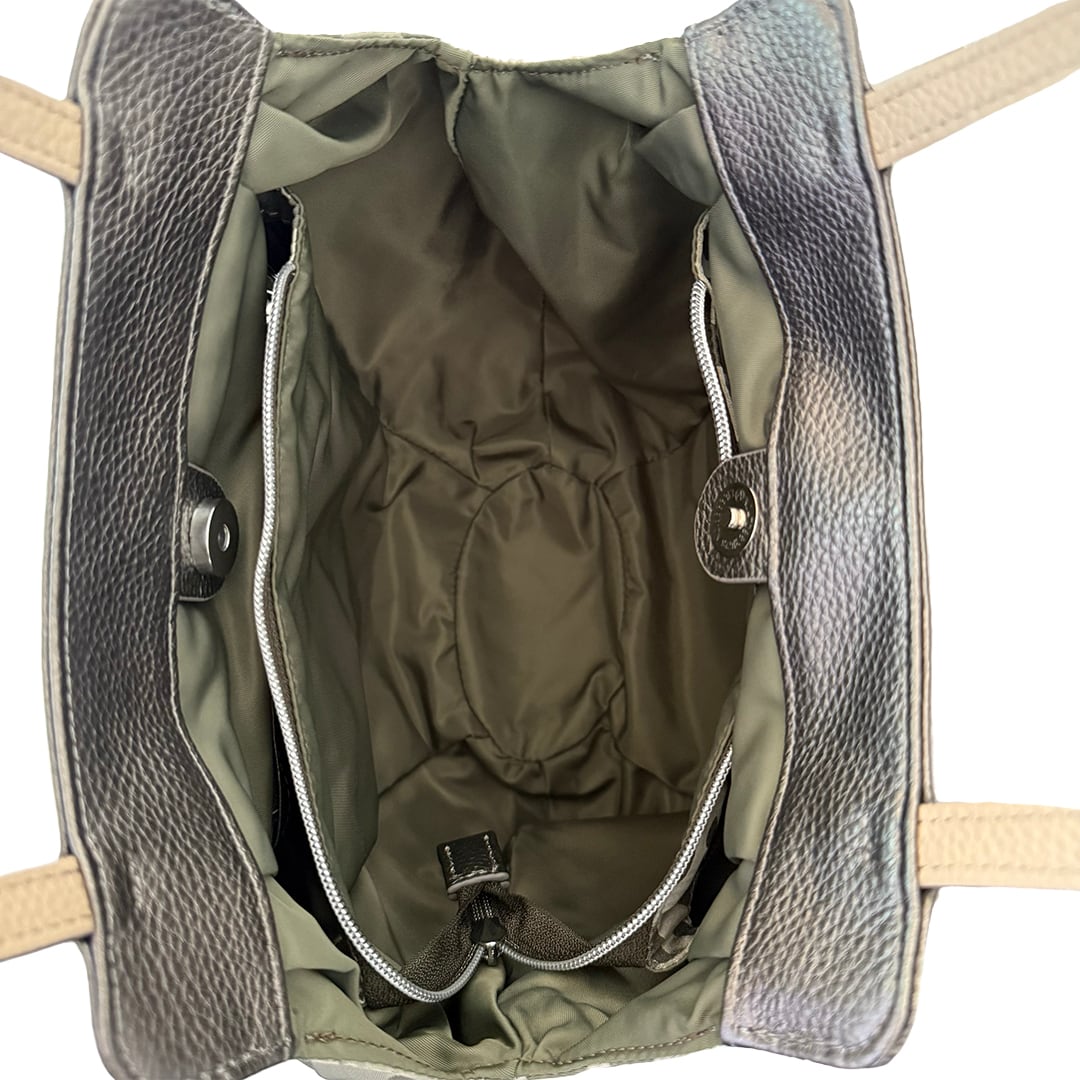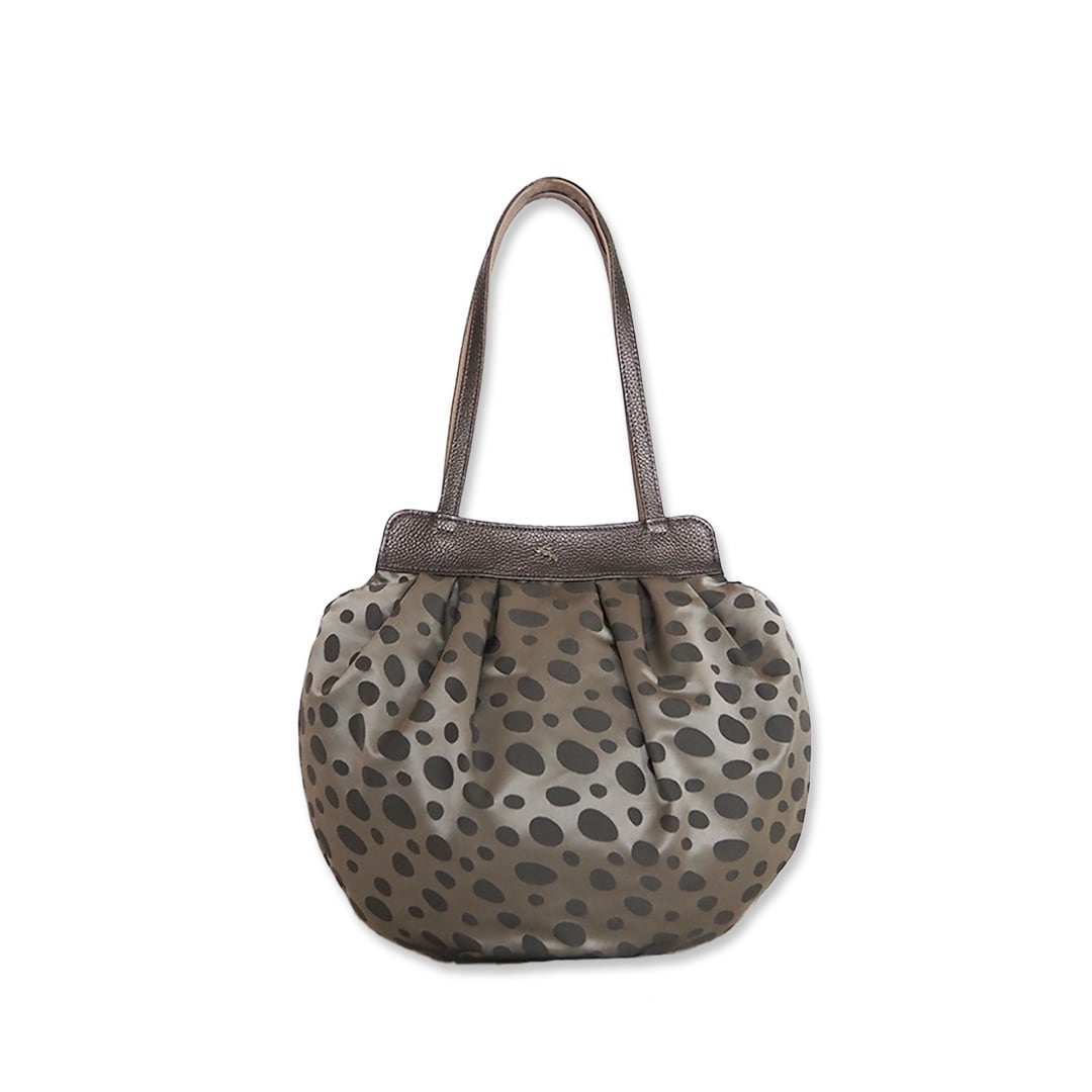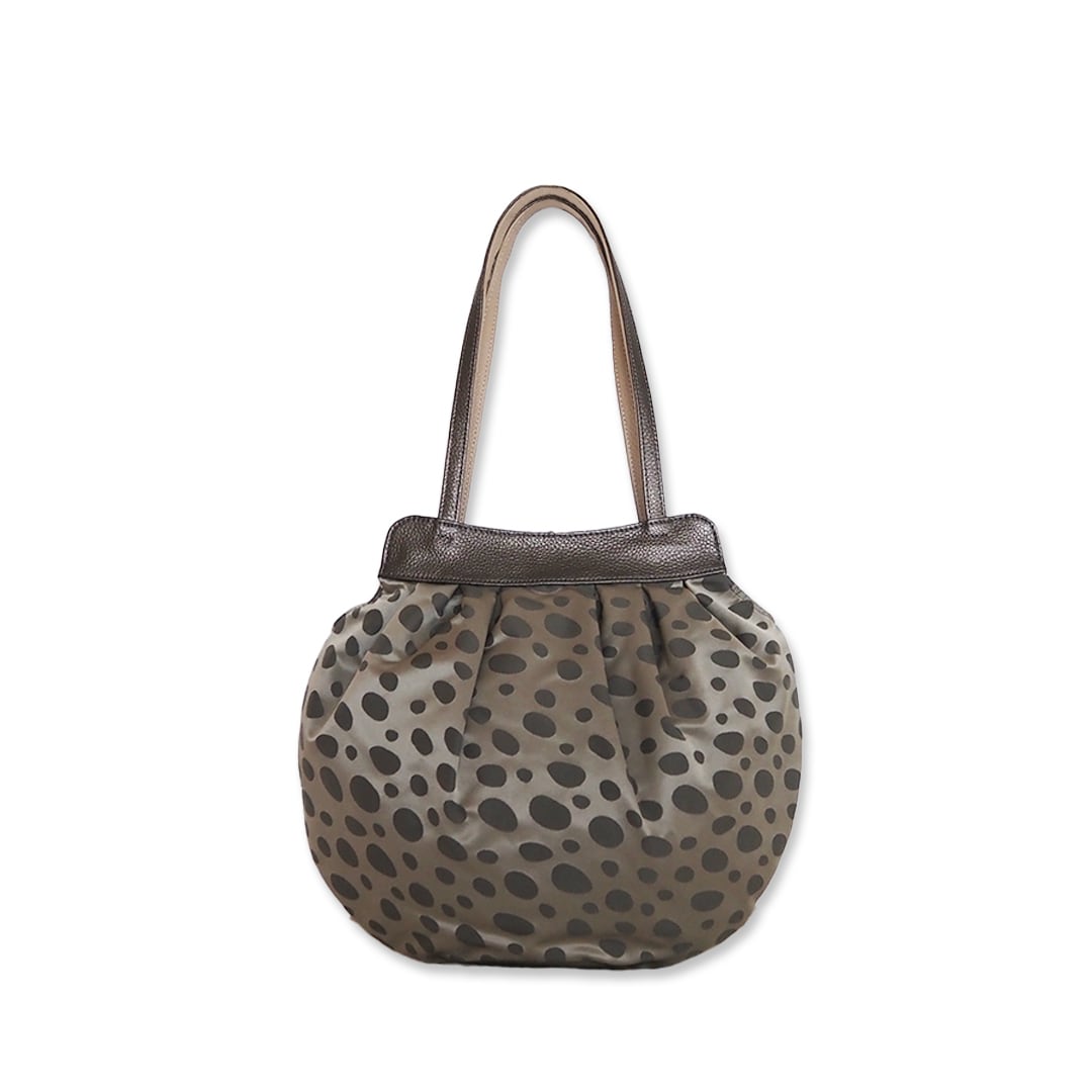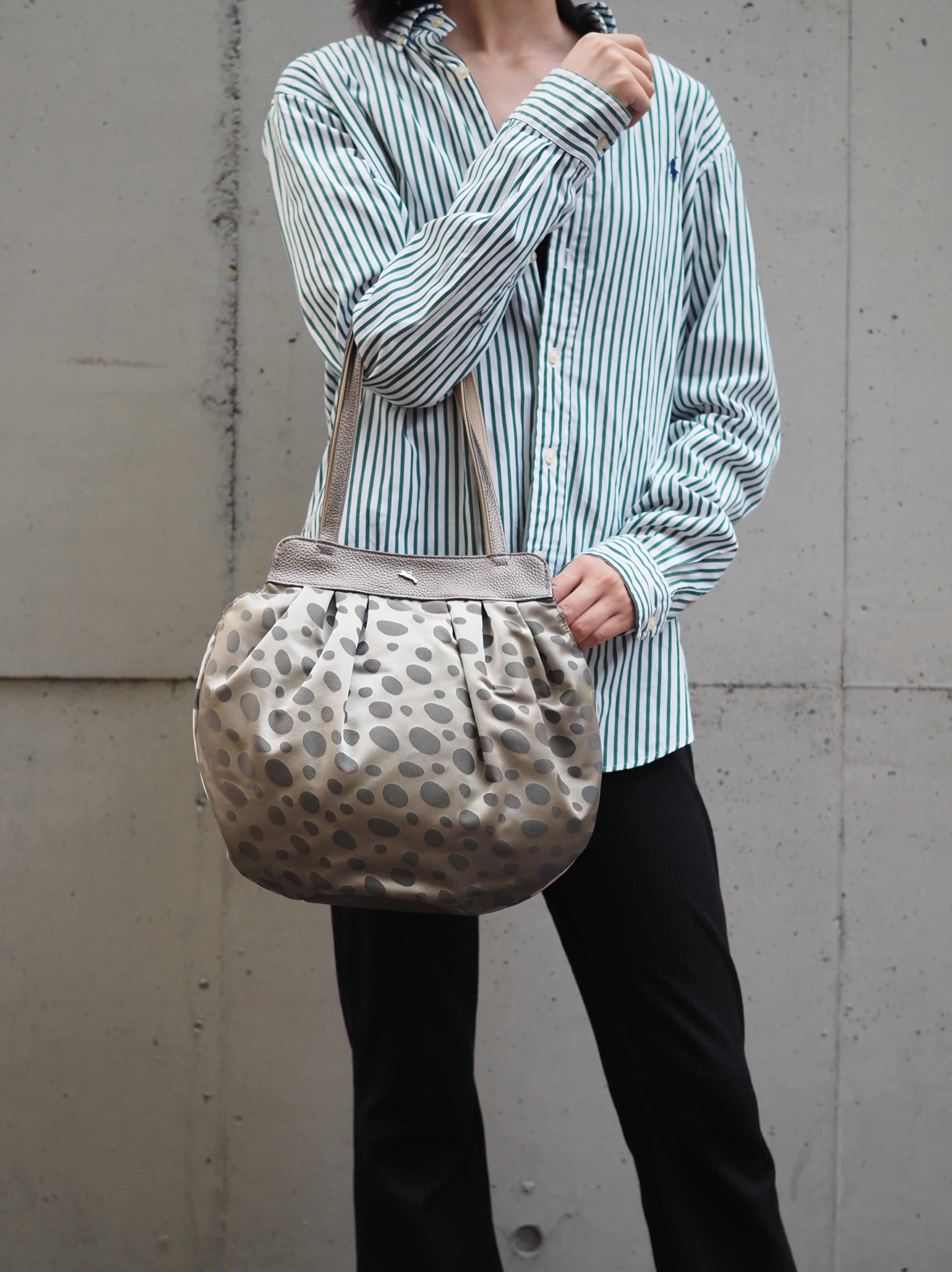 軽さと扱いやすさにより大人気のオリジナルジャガード織素材(ダルメシアン柄・ライトカーキ)に、ギャザーによる丸みと美しい立体感を持たせたセミショルダーバッグ。