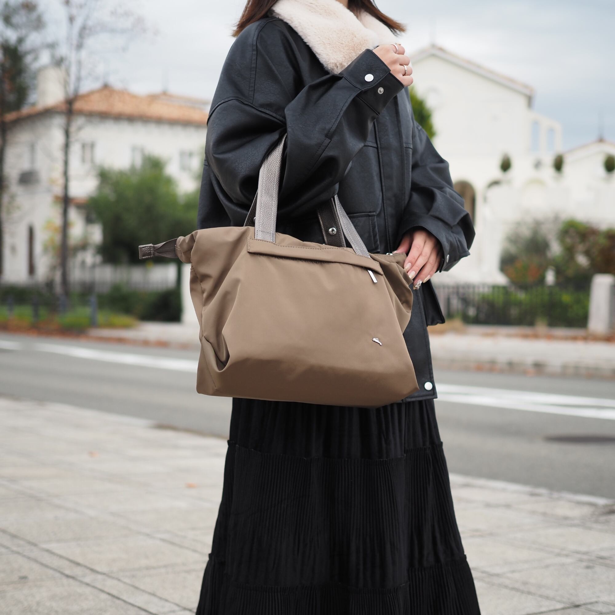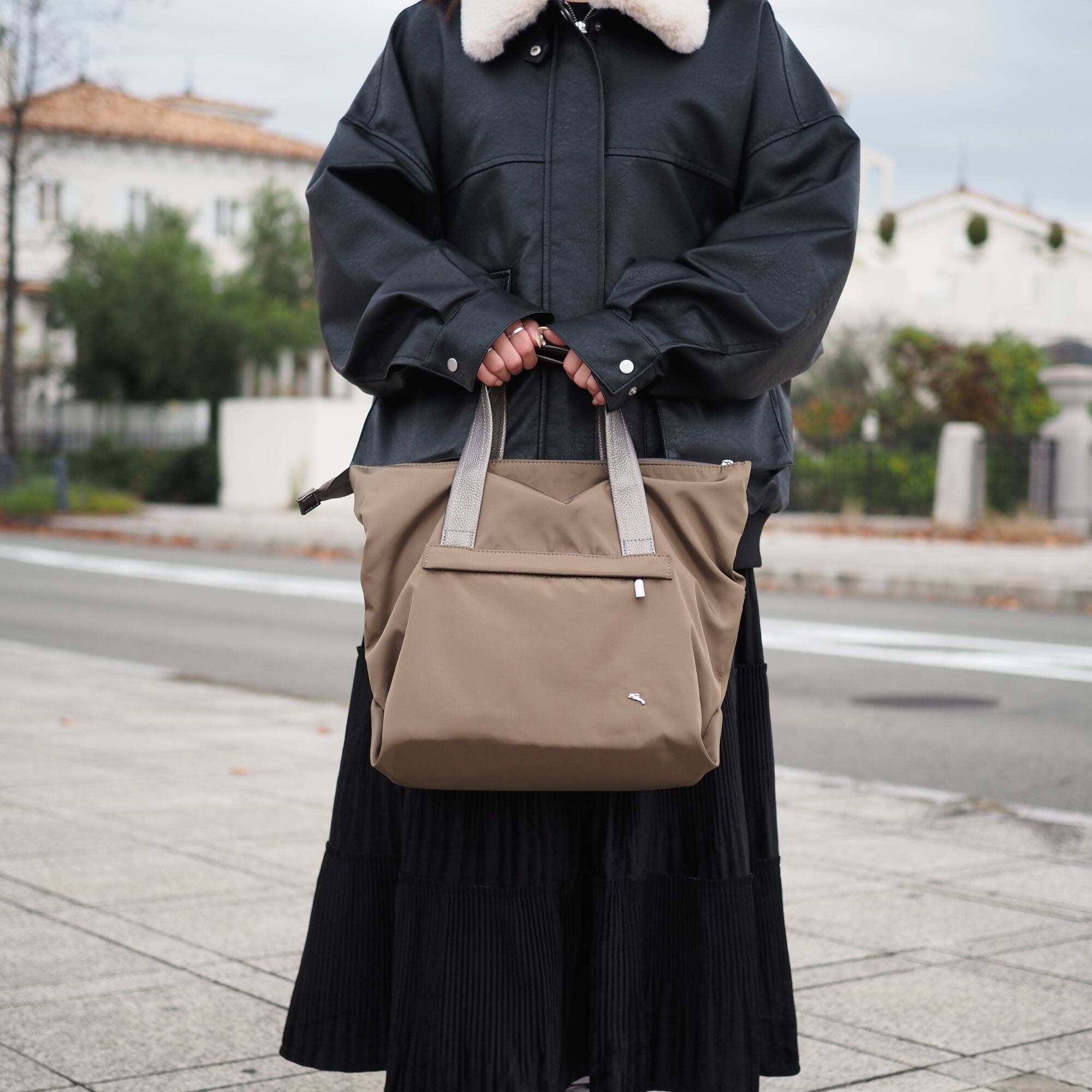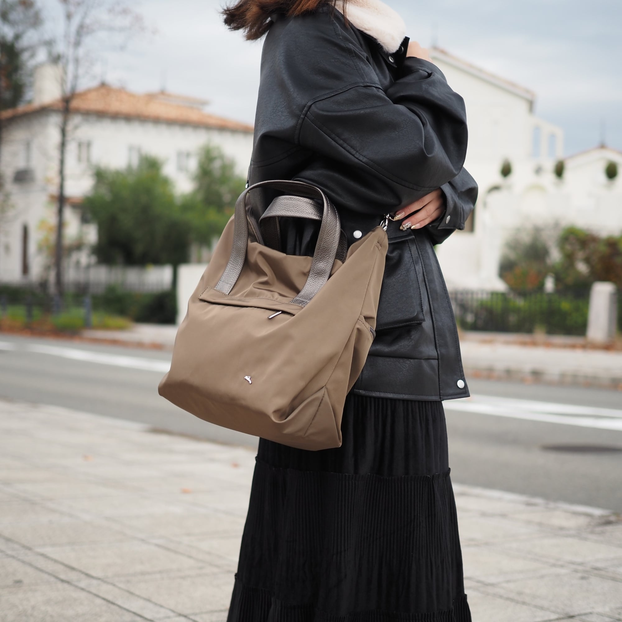 使い方によってトートにもショルダーにもなるデザインです
