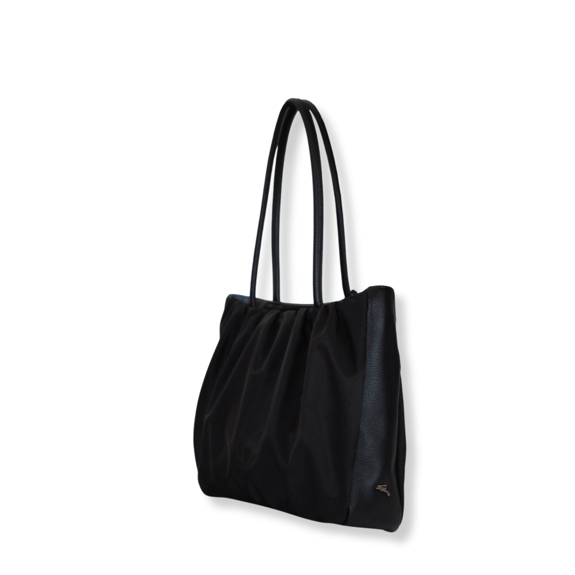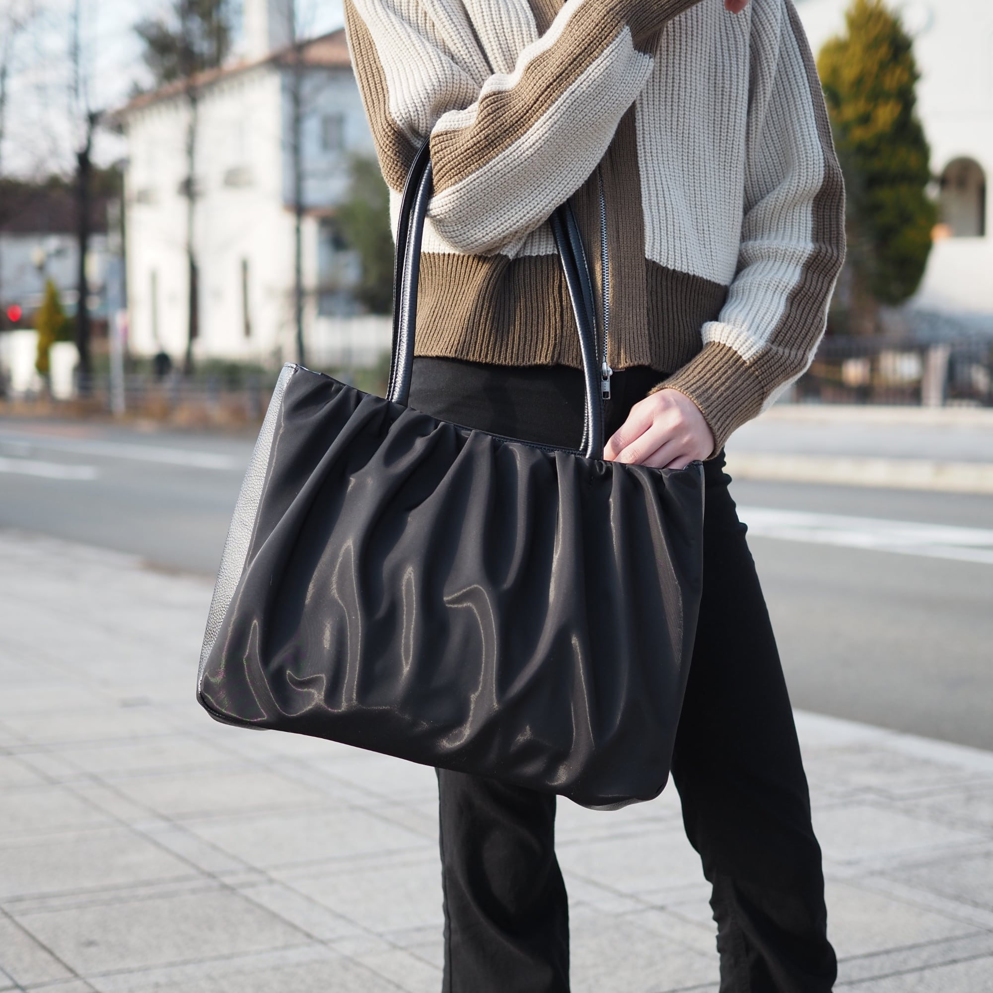柔らかなドレープを施したA4サイズ、13インチのノートPCが入るセミショルダーバッグ