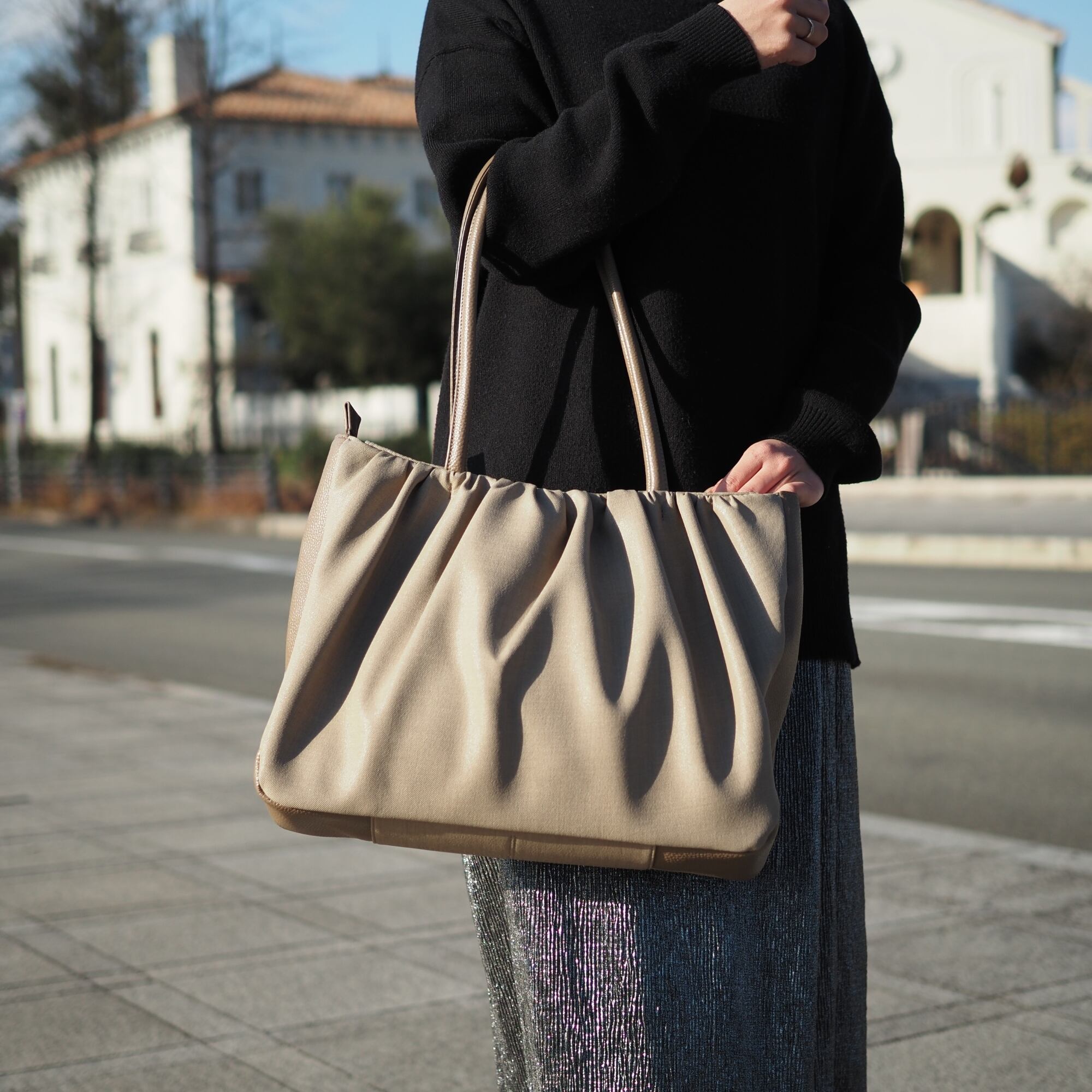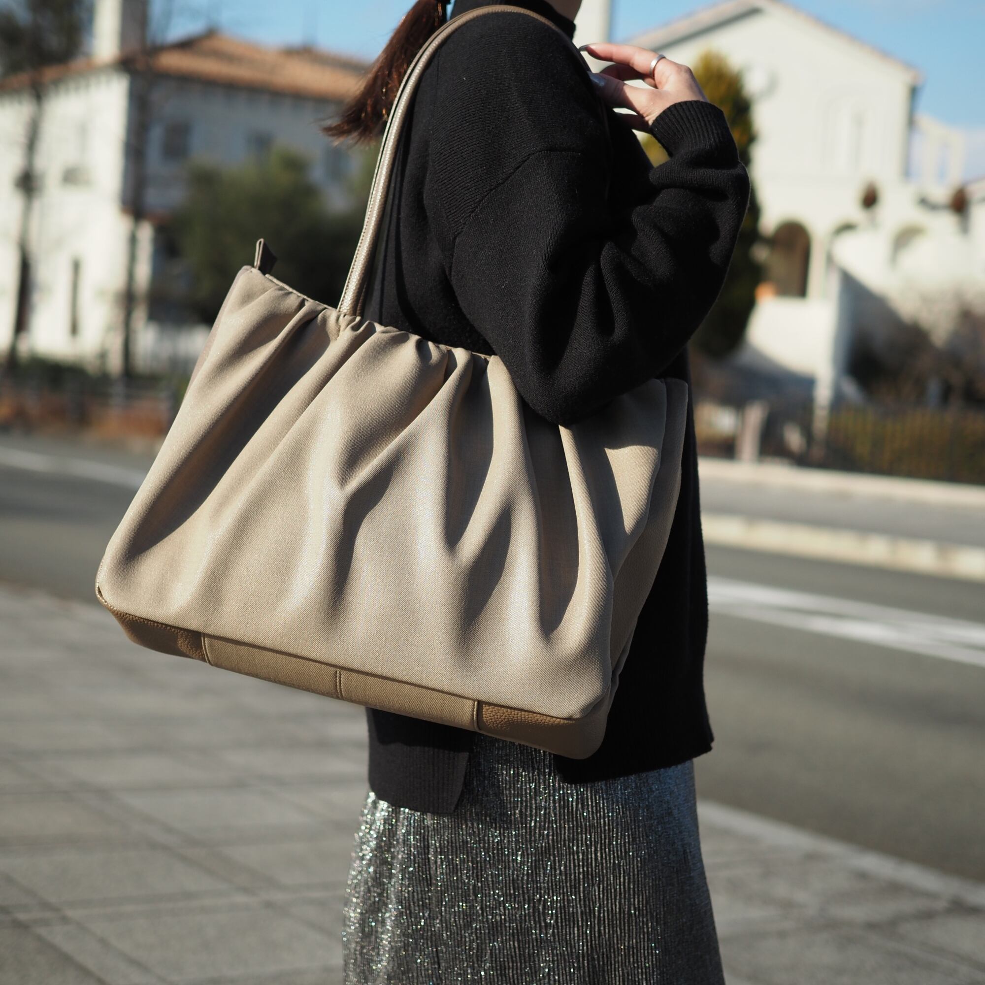 柔らかなドレープを施したA4サイズ、13インチのノートPCが入るセミショルダーバッグ