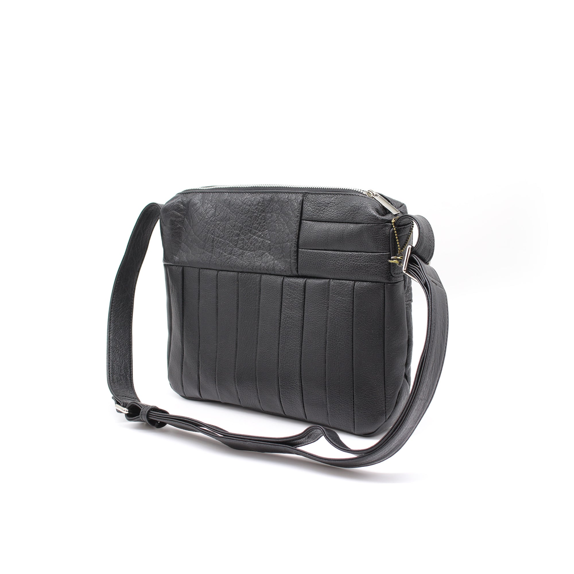 バッファロー(水牛の革)の表情を生かしながらストライプとボーダーの組み合わせが新しいショルダーバッグ