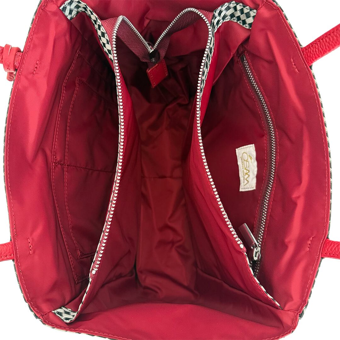 アクセントとなるレザー製のハンドルやパーツは人気カラーのレッド。