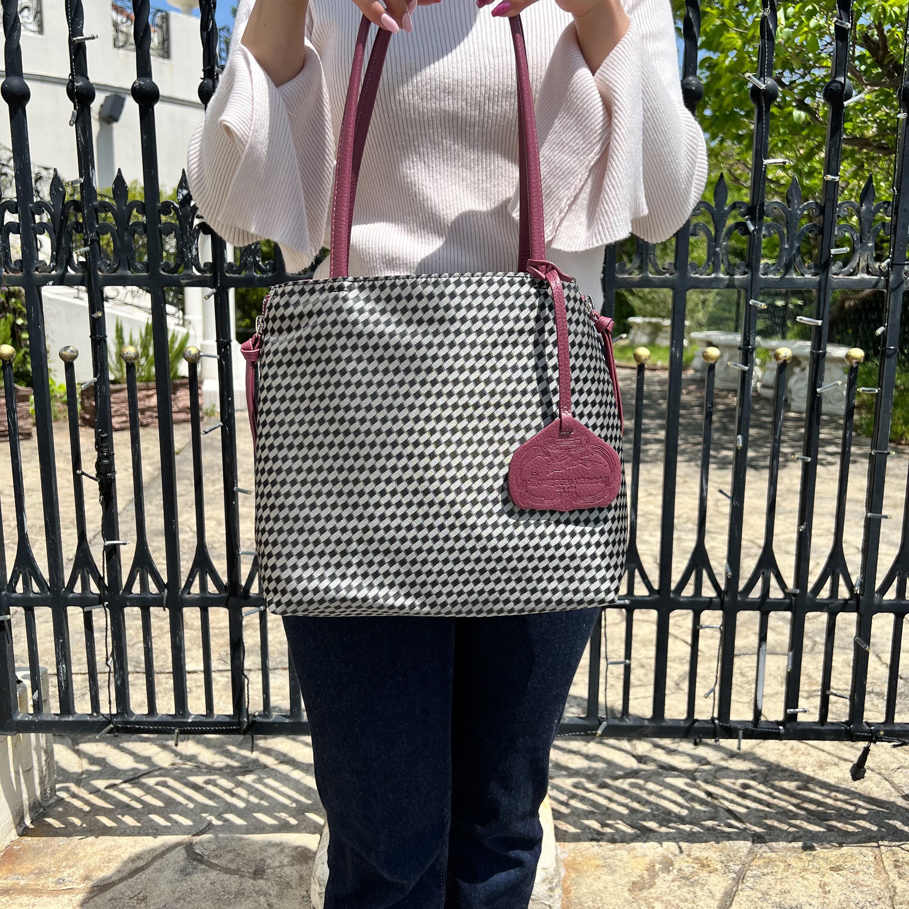 ジャガード織(メッシュ柄)にハンドルと内装はソメイヨシノを連想させるカラーを採用しました