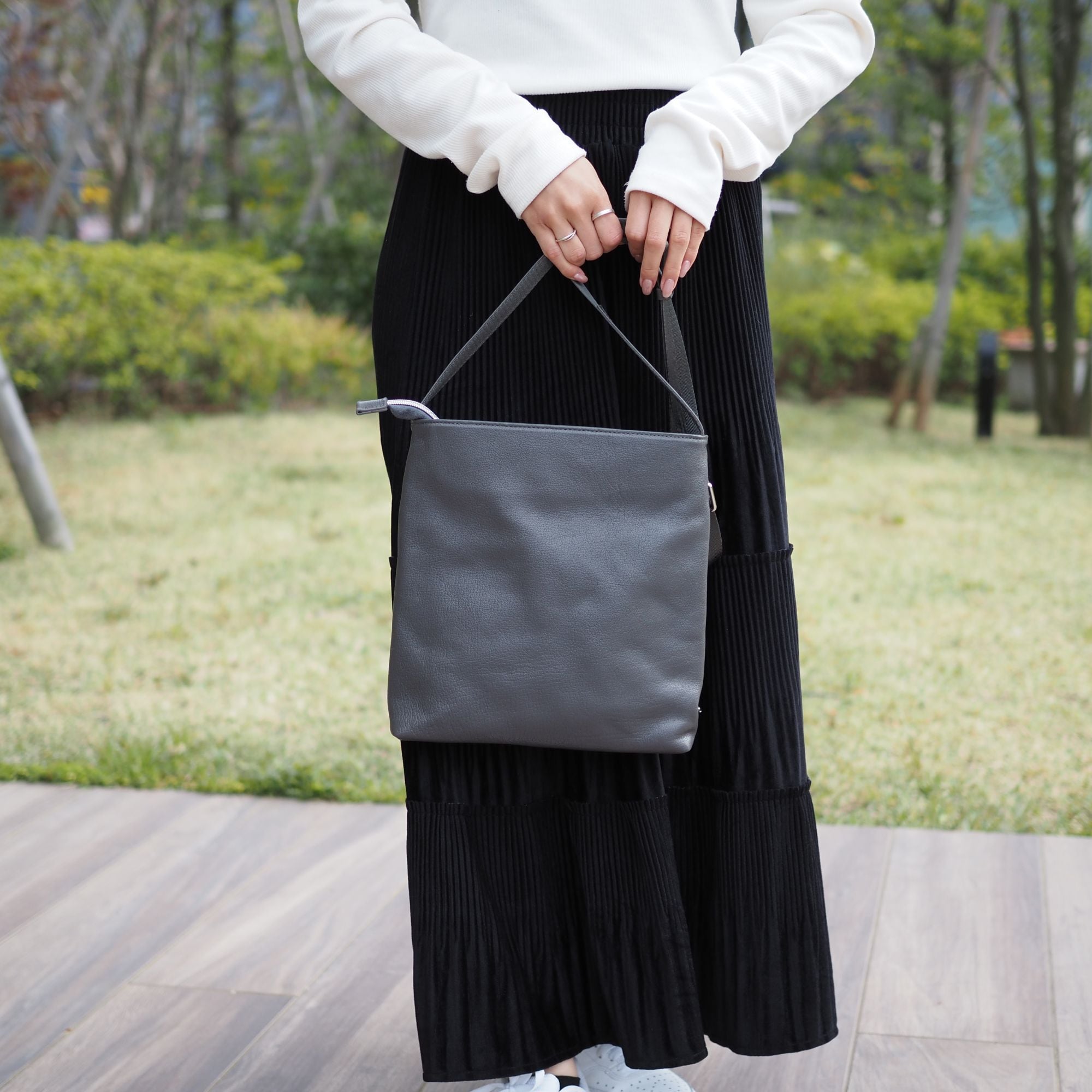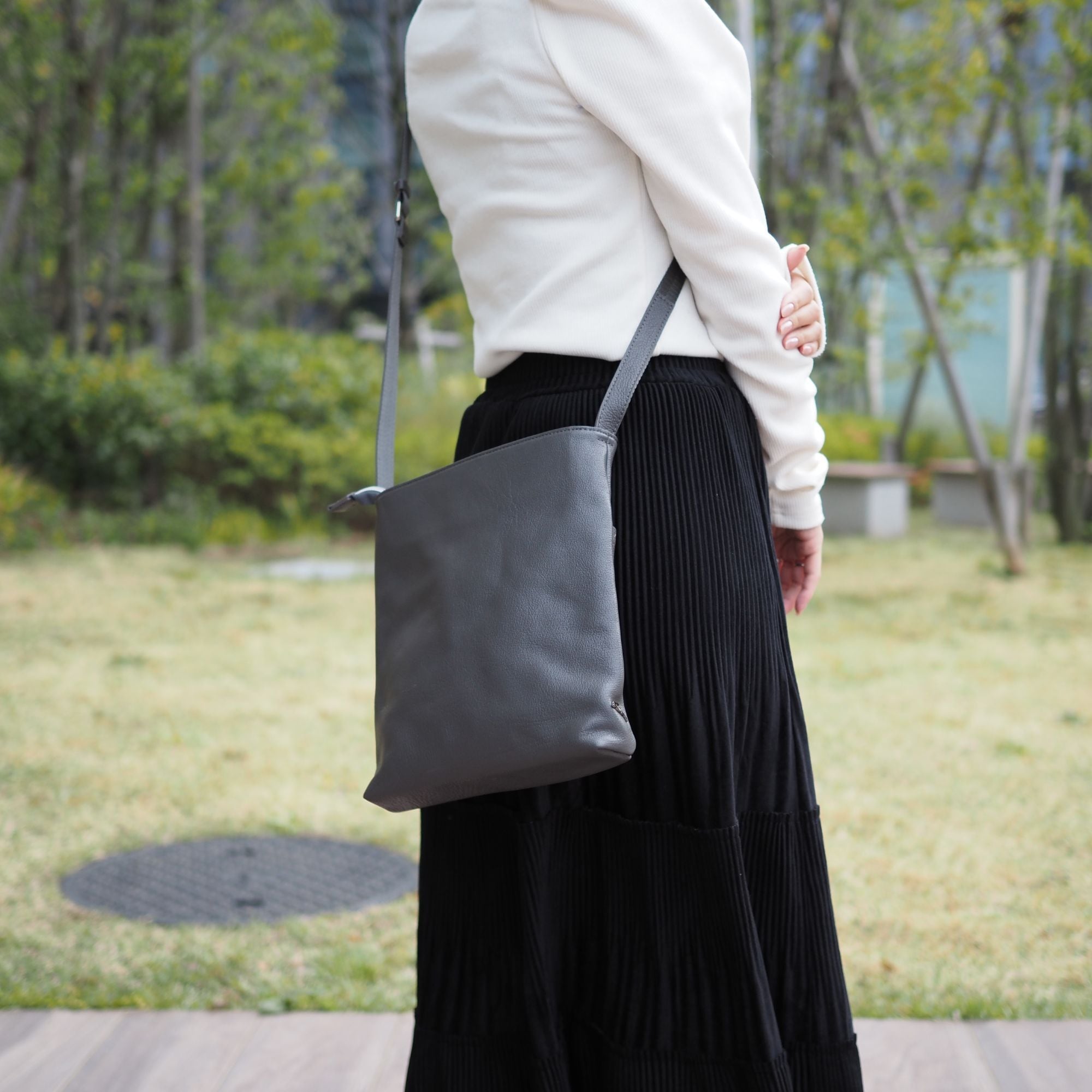 3連ファスナーが特徴のオールレザーショルダーバッグ